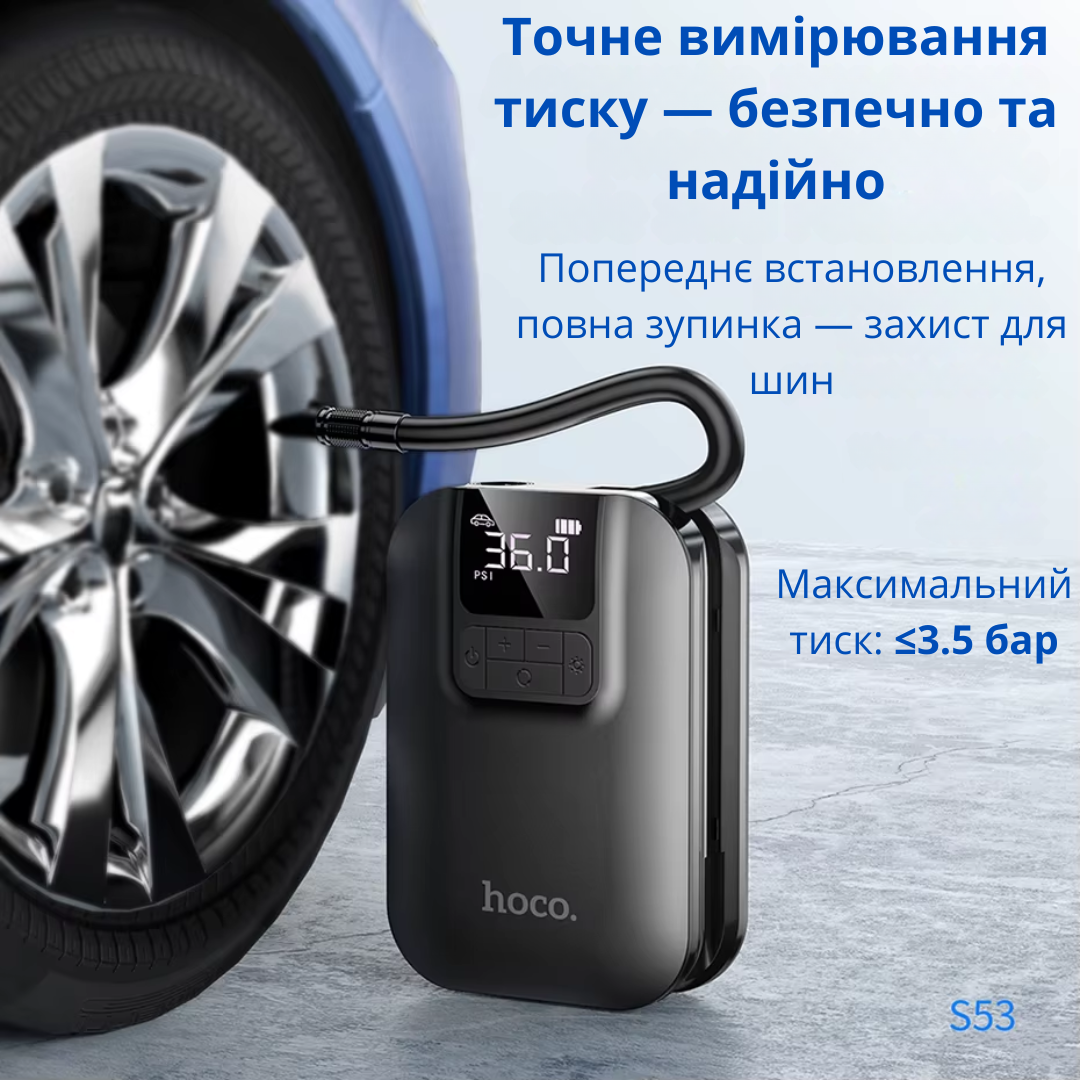 Електричний насос для автомобіля HOCO Breeze portable smart air pump S53 є простим та функціональним пристроєм, який необхідно мати кожному автомобілісту у багажнику.